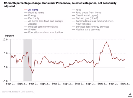 While jobs growth has slowed considerably this year, the last unemployment figure we have, for August from September’s report, remained very low at 4.3%.